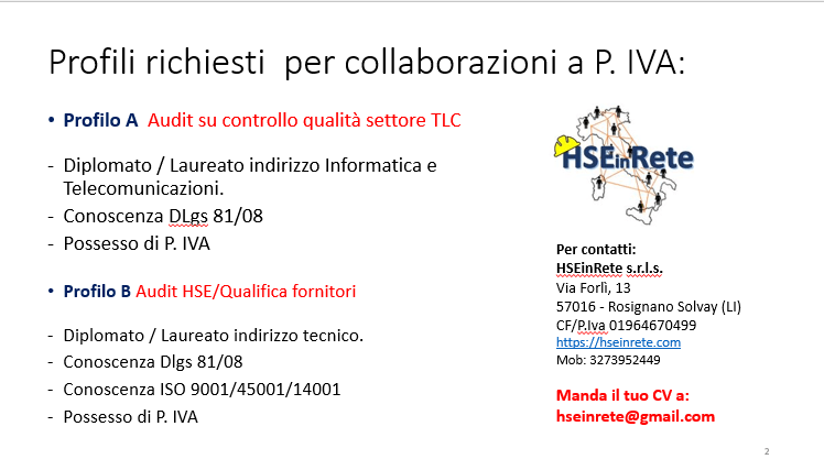 Questa esperienza mi ha dato la possibilità di conoscere tanti professionisti e tante realtà diverse e da qui l’idea iniziale e mission della società: creare una rete di professionisti con presenza sull’intero territorio nazionale che, pur mantenendo ognuno la propria autonomia, decidono di collaborare tra loro, di fare squadra. Nasce così HSEinRete Srls!